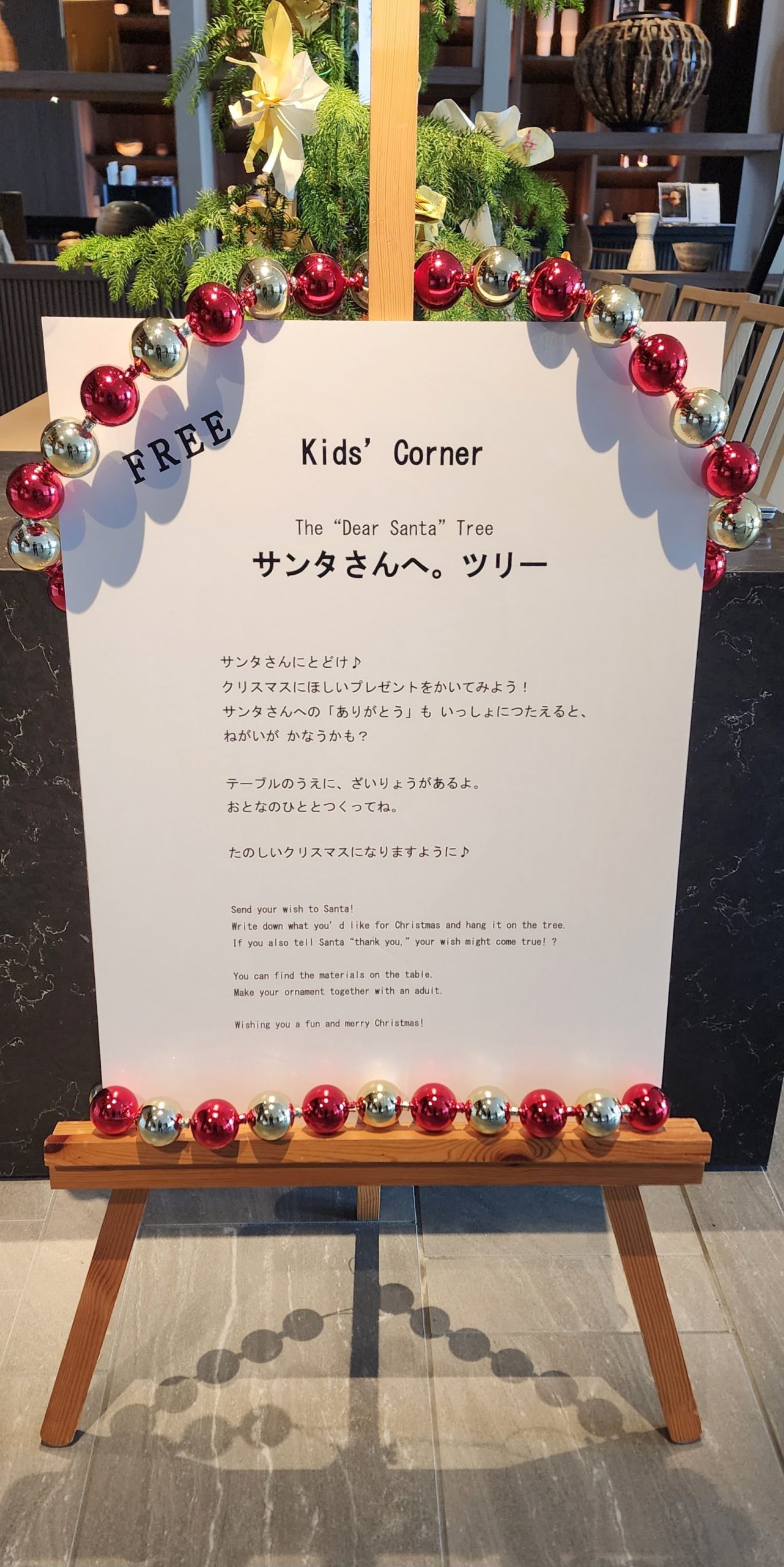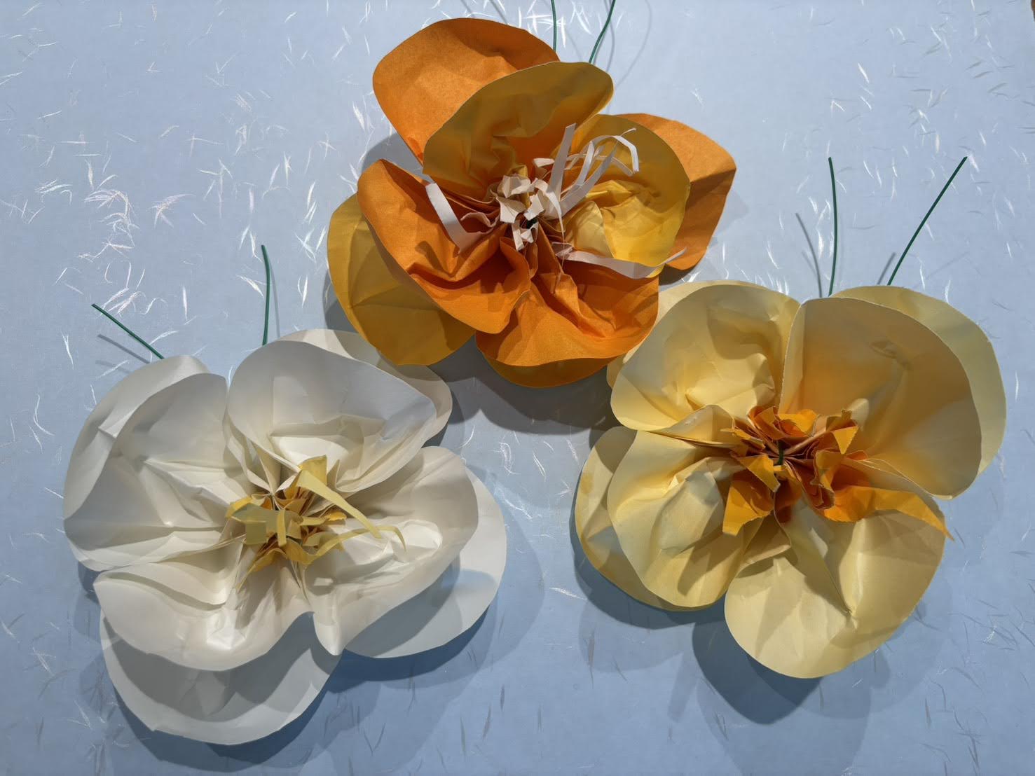 小さなお花を作り、THANKS TREEを参加型ツリーとして
